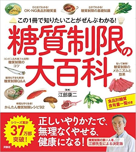 糖質制限の大百科 (日本語) 大型本 – 2019/6/19 - この1冊で知りたいことがぜんぶわかる!正しいやり方で、無理なくやせる、健康になる!シリーズ累計37万部突破!糖質制限の第一人者、江部先生による決定版